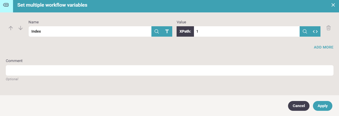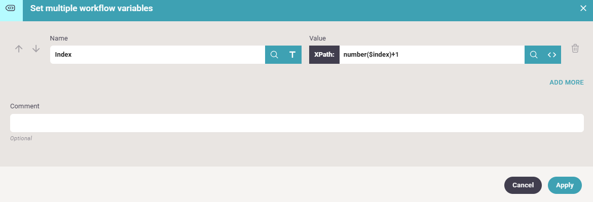 Here you might notice, that we need to use the number() function in order to execute a numeric operator to a workflow variable as the workflow variables are always a string.