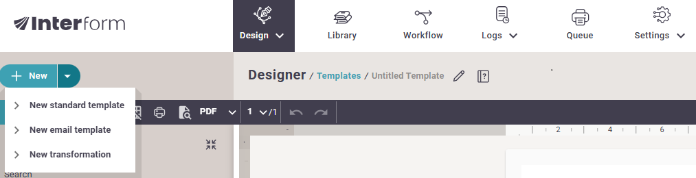 A template is the design or form, that you can create in the designer. Here you can setup the conversion from an input XML file or spooled file into a graphical result.