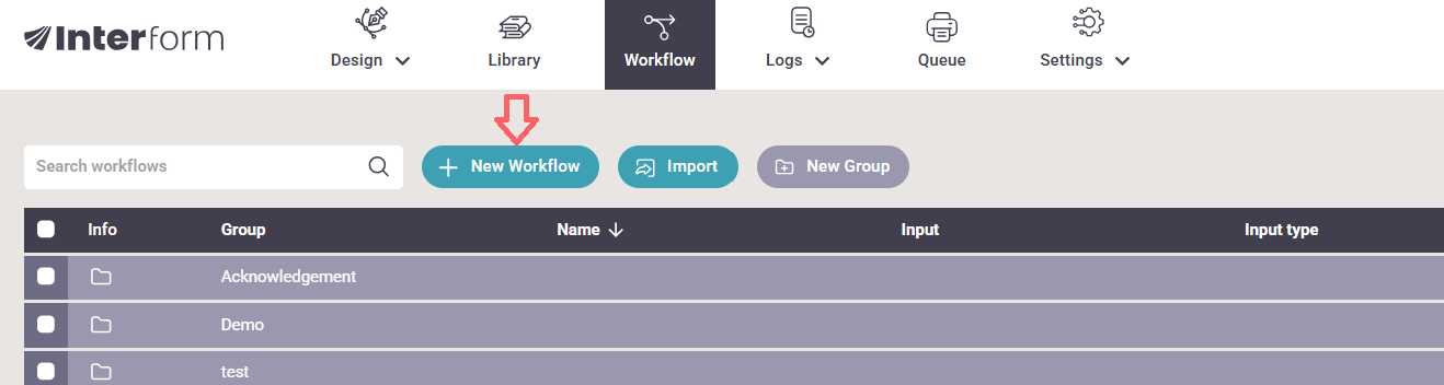 Group (Optional) It is possible to specify a group name for a workflow. The group is displayed in a special column in the workflow overview, and you can sort the workflows e.g. on the group. In this way it is easier to identify workflows with identical groups.