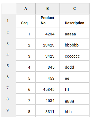 Seq,Product No,Description