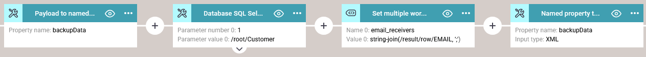 This selects the records from a table, that are to be extracted in this workflow. The workflow will convert the records into an XML file, which will be saved into the payload for further processing.