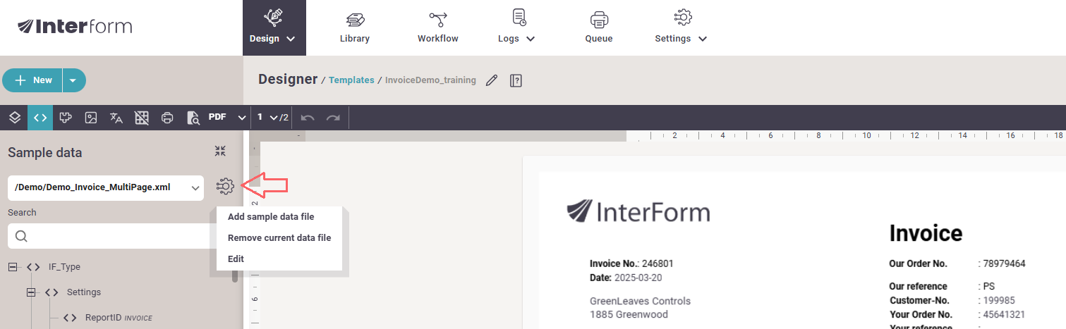 It is possible to edit a file in the Library, but it is also possible to edit the contents of a sample input file directly in the designer. You can do that as shown below.
