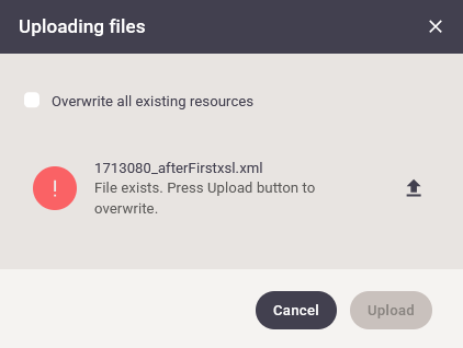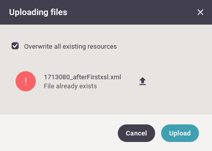 The document folder of the library is only meant for input files with the extensions .xml and .splf. If you manage to save files with other file extensions in this folder (or subfolders to this), then these files are not shown in InterformNG2. If you want to upload other files than .xml and .splf to InterformNG2, then you should first consider if the file falls into the category of other resources (and use that) and if not, you should consider to upload the file into the others library instead.