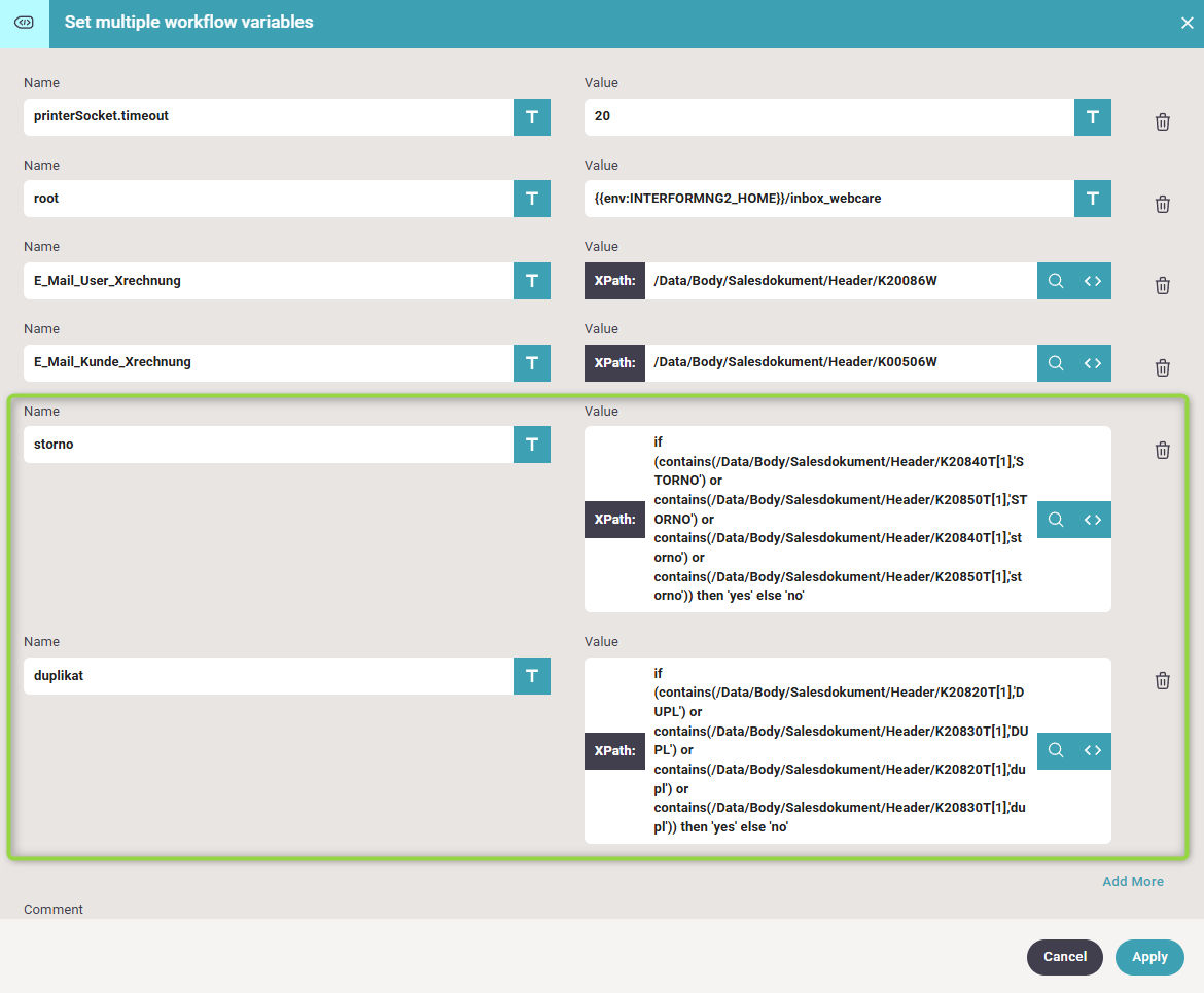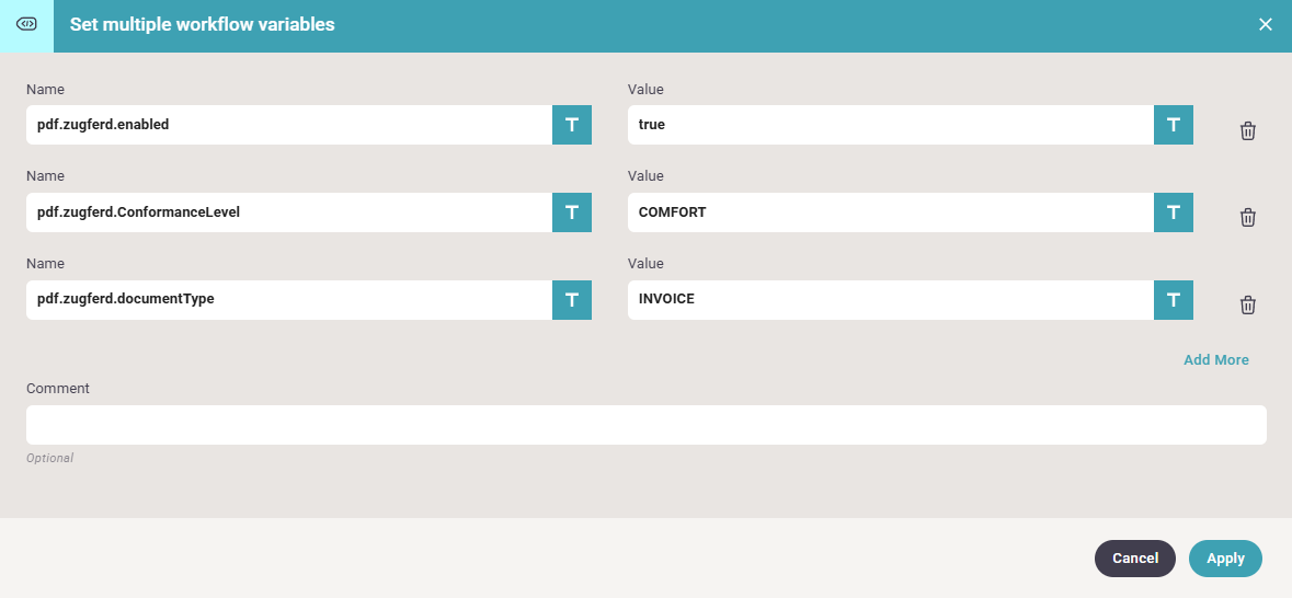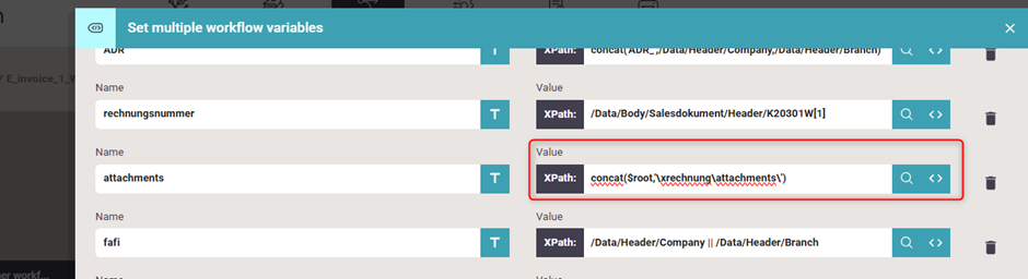4 - Add Multiple Workflow Variables - ZUGFeRD Metadaten
