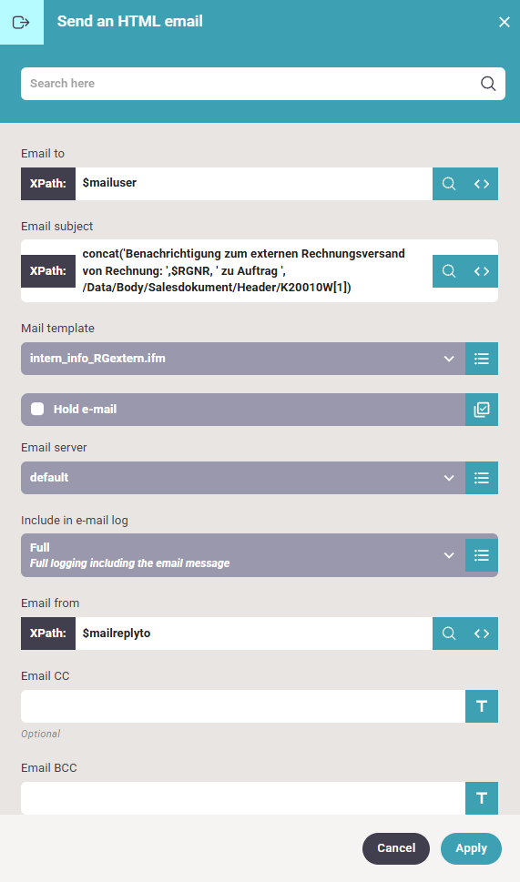 → Der Versand der XRechnung erfolgt an die definierte Empfängeradresse. Dieser erfolgt üblicherweise am Abend, um mögliche Stornos noch zu berücksichtigen.