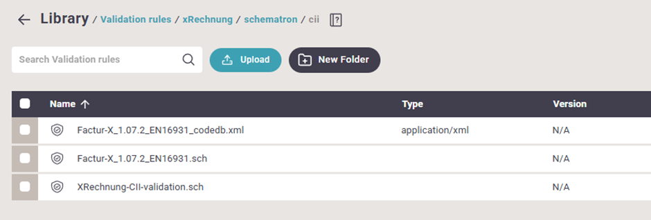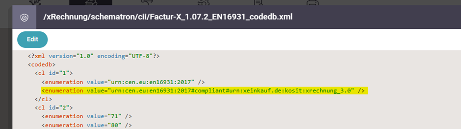 Validation Rules | Validierung der E-Rechnungen auf Inhalt, Format und Syntax gemäß aktuellem Standard. | ![]() Wichtig: Zur Prüfung der XRechnung auf EN16931-Konformität muss folgender Eintrag in der codedb.xml ergänzt werden: |