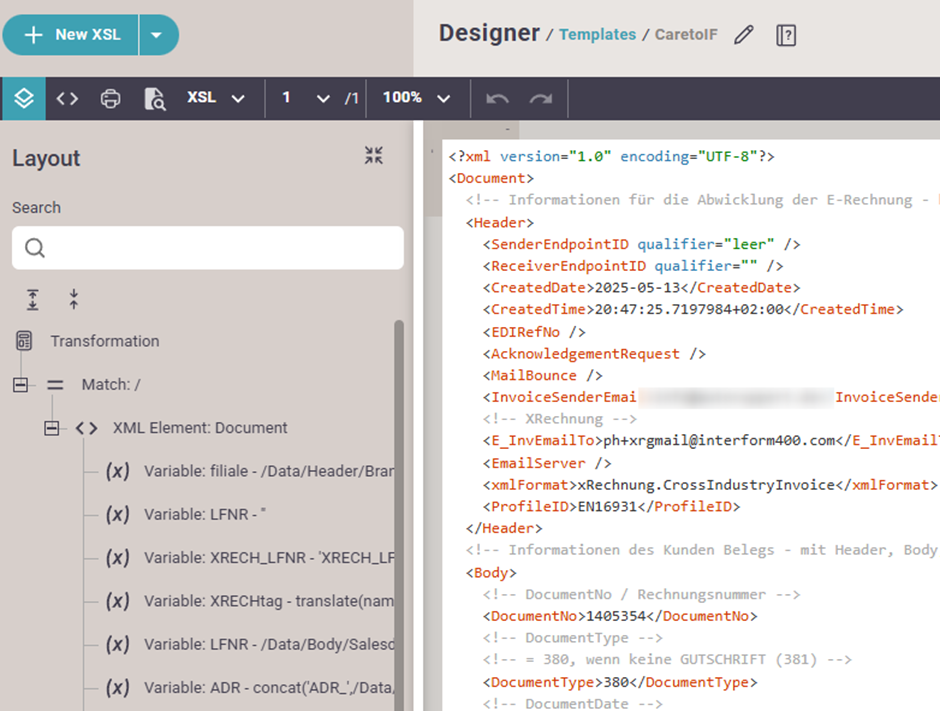 Templates / Transformationen | CaretoIF | CaretoIF transformiert die care-XML in das interne InterForm-XML-Format. | |