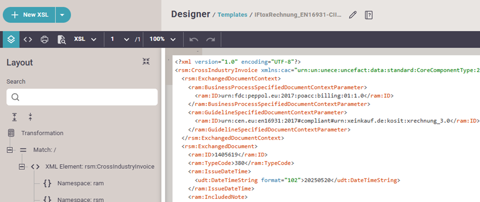 IFtoxRechnung_EN16931-CII_3.0.2 | Transformiert das InterForm-Format in das XRechnung-XML-Format. | ||
