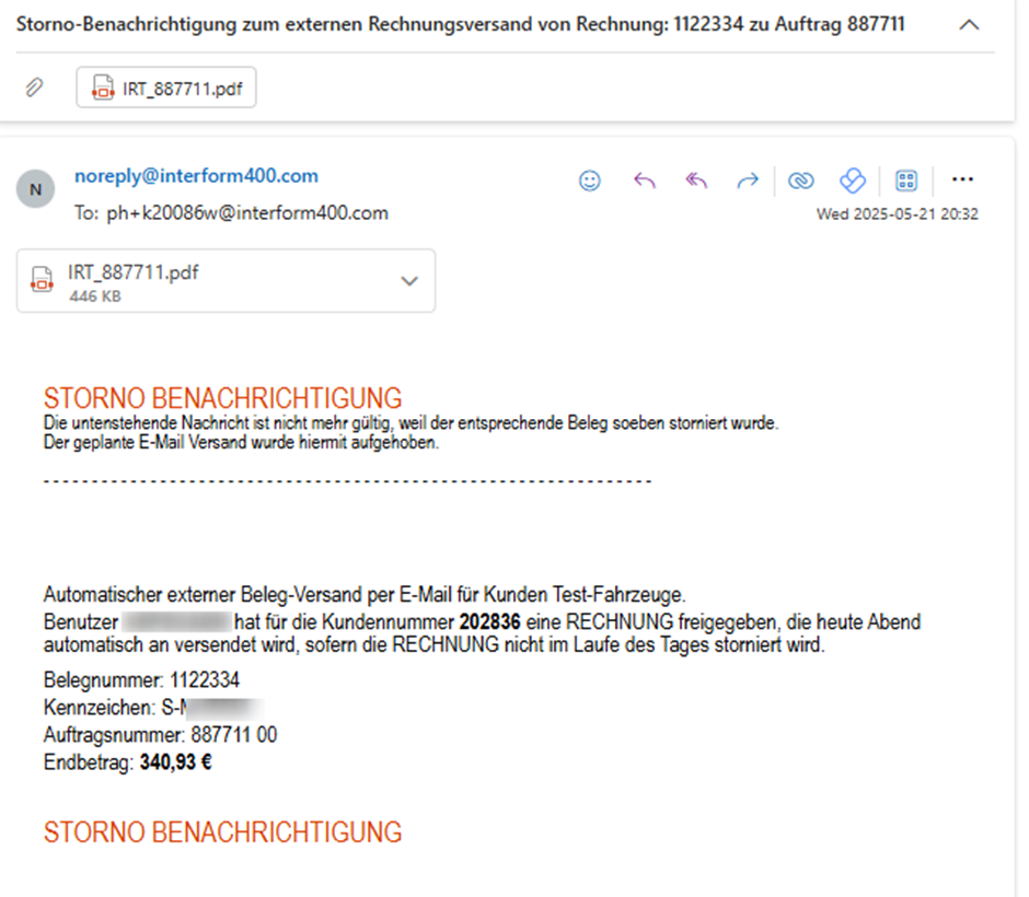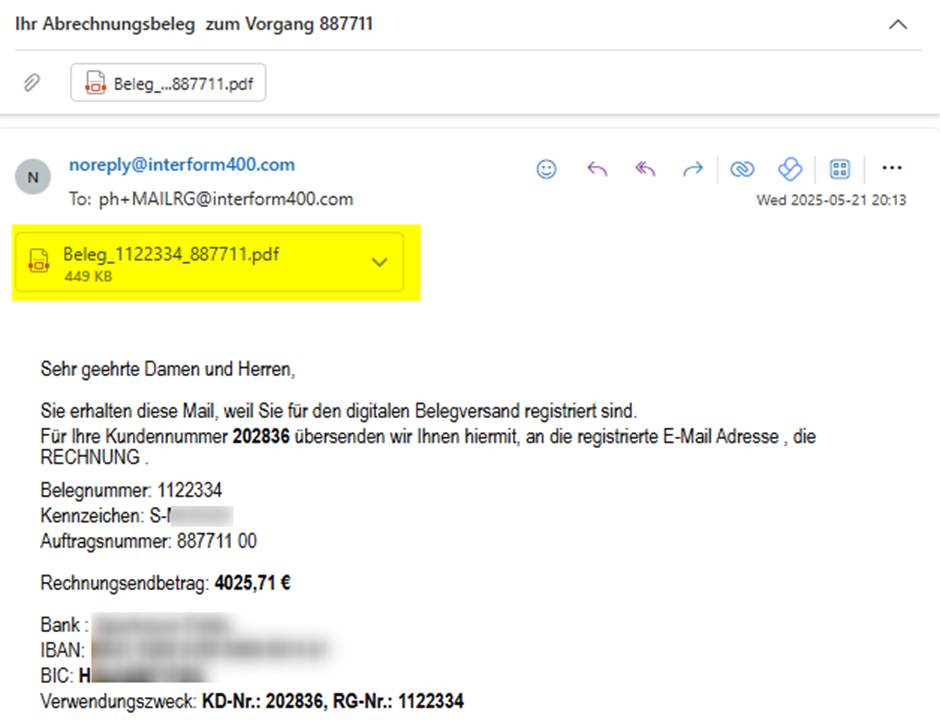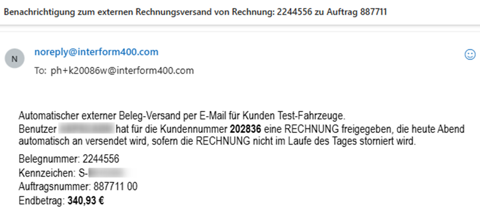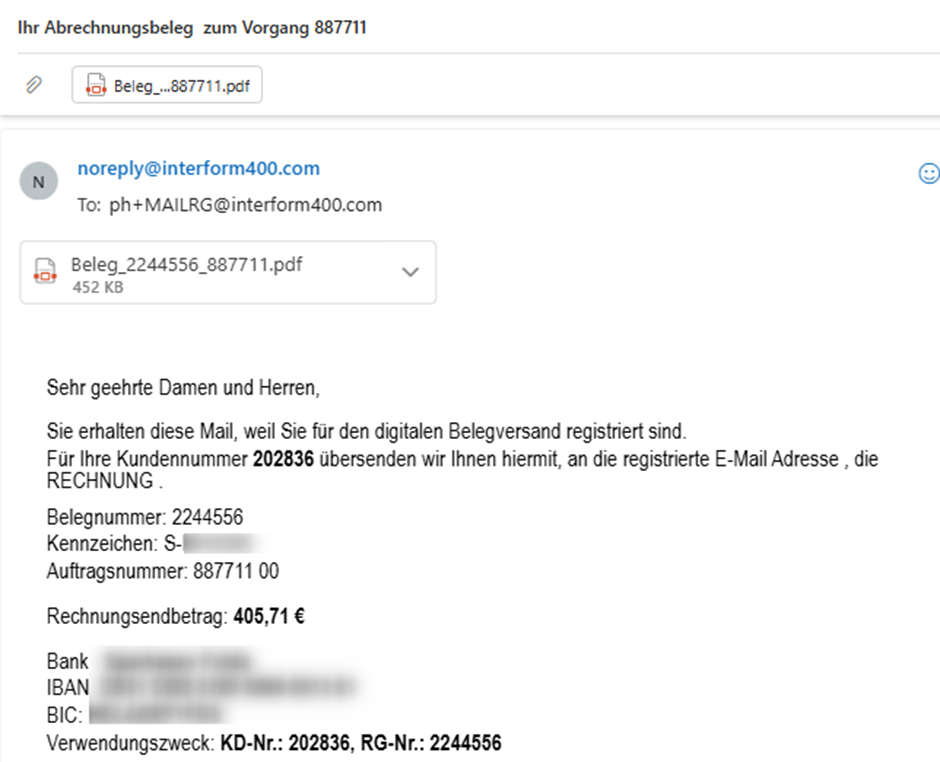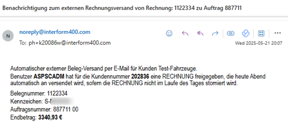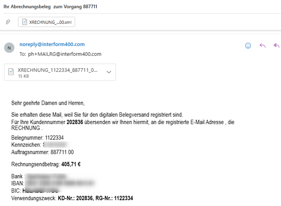 → Statt der XRechnung wird eine normale PDF-Rechnung an die Adresse in MAILRG (bzw. dem Kundenstamm) gesendet.