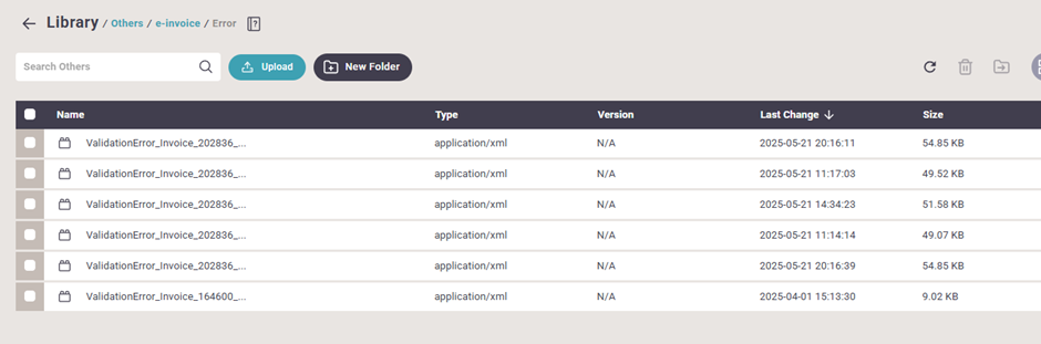 Fehlerberichte | /e-invoice/OutputFormats/Error/ | enthält XML-Dateien mit Validierungsfehlern sowie Fehlerberichte (z. B. aus Schematron-Prüfungen) |