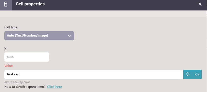 In the screen shot above you can see an XPath error. The reason is, that this text is not a valid XPath expression. If you want to insert a fixed text in XPath, then you need to delimit the text with either single quotes (' ') or double quotes (" ").