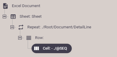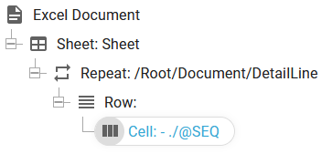 If you e.g. have inserted a repeat loop, that repeat rows for all the detail lines of an XML file, then the Excel template could look like this: