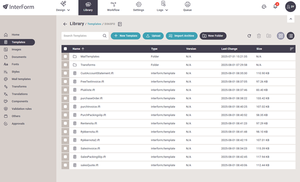 - InterFormNG2 D365 document templates (depending on the document package purchased),