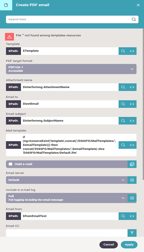 is made to capture any irregularities within the D365FO_GENERIC workflow which forces the workflow to suspend and then creates a new file in the others folder within InterFormNG2, so the user has access to the xml file which made the D365FO_GENERIC to suspend. - D365FO_GENERIC