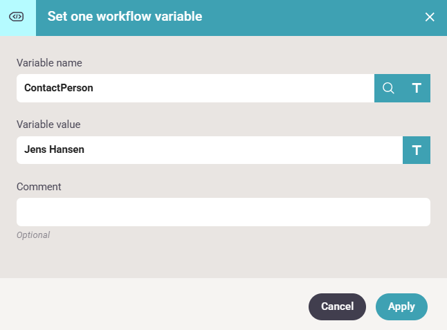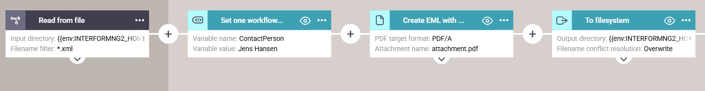 Then we might want to refer to the Contact_Name from the input file in the email contents. One way to do that, is to change the example above and set that in the ContactPerson variable, but it is also possible to refer directly to the XML without a variable.