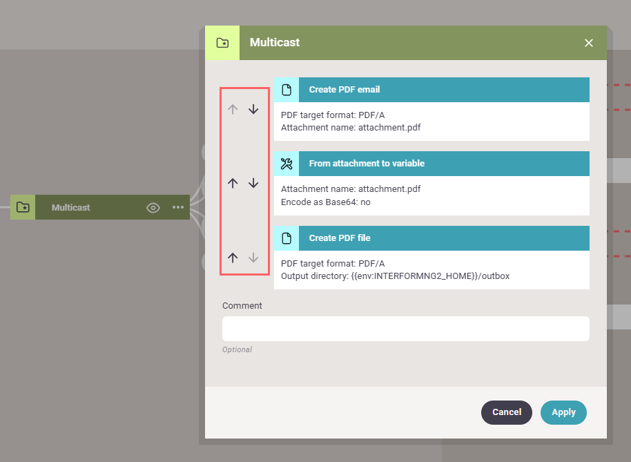 To do that the multicast component can branch out to one or many sub-trees, that contains workflow components.