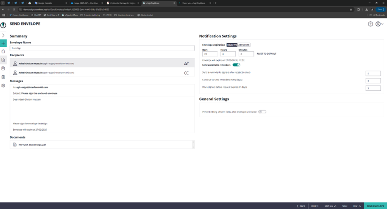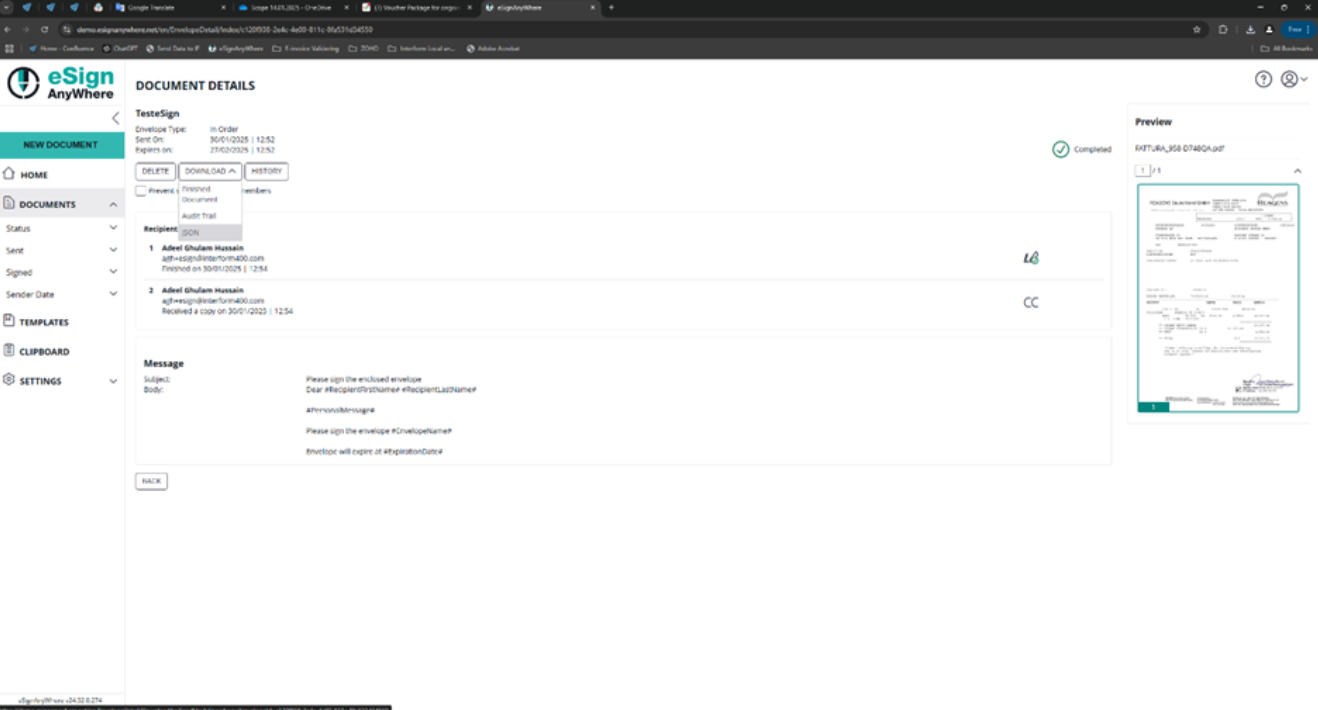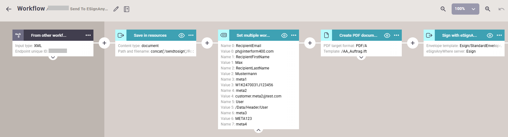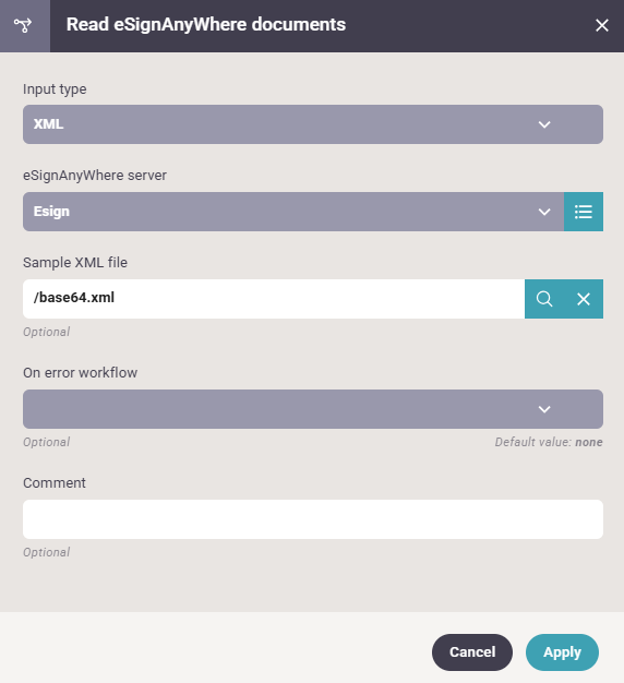 API version: From version 3.5.2 onwards we added a new field in the settings so you can choose between v5 and v6. The default is v5. Note that it is possible to use both API versions interchangeably, so if you have old v5 envelopes and some new v6 envelopes, you can just create two different settings instances with different versions and then in the workflow choose the settings instance that matches the used envelope version.