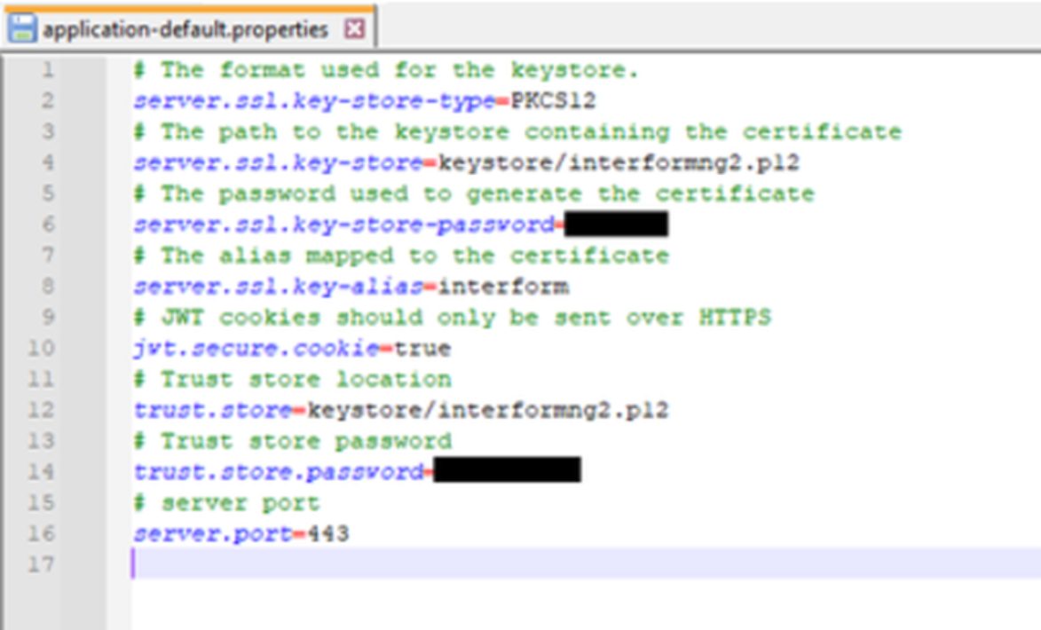 (Example for settings within application-default-properties from an active installation.)