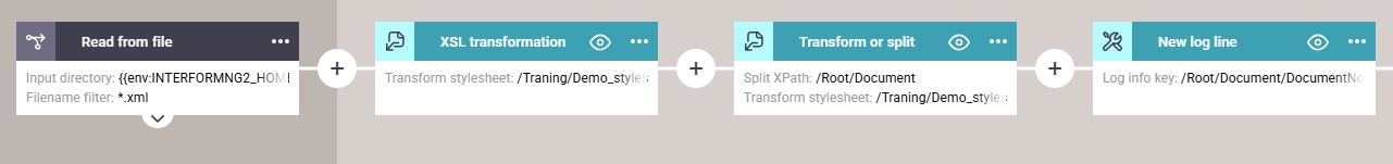(In the example above the sample XML file contains multiple Document nodes and with [1] only the first one is selected). Remember to make sure, that the XPath function in the New log line match the new splitted documents.