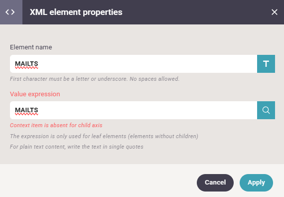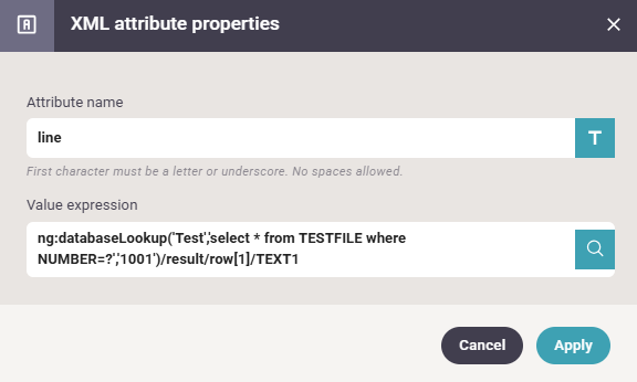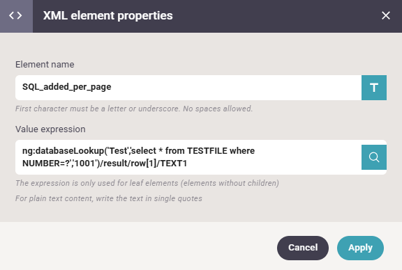 The Xpath expression added is //@SQL_data: (The name we specified above for the attribute name)