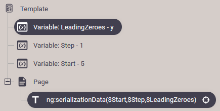 Here three workflow variables has been defined: LeadingZeroes, Step and Start.