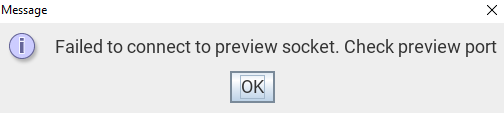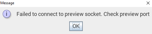 9.The preview port is default 8110, but if you select another port number, then the selected port number need to be the same in the system setting as on the preview client. If the port number is not correct (or if it is blocked) you will see this message in the preview client: