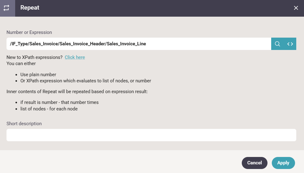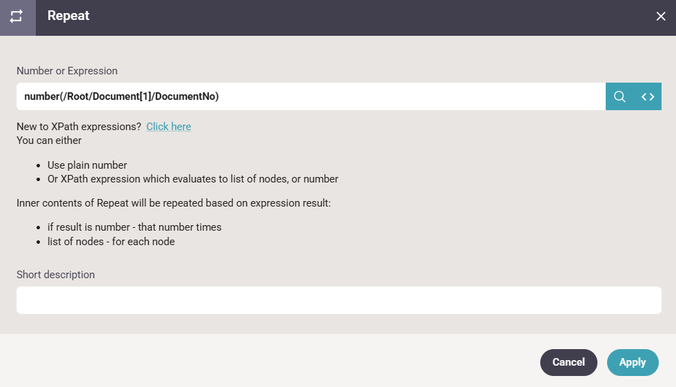 - and the xml path of the node is inserted into the Repeat element: