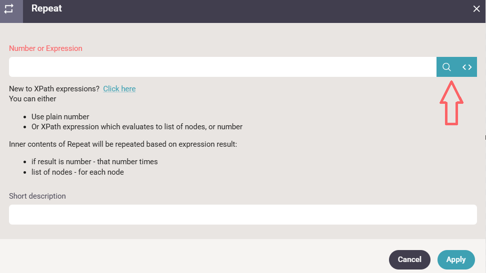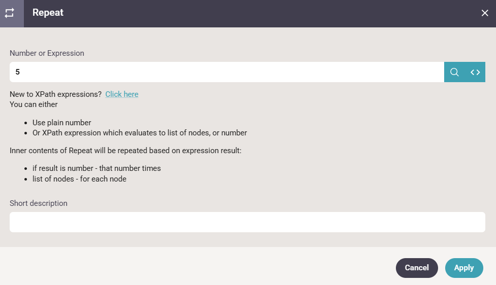 The number of repetitions can also be set as a variable/XPath, but then you should remember to convert the value to a number: