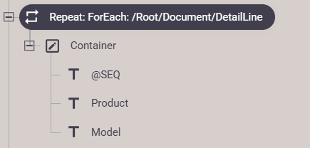 Inside the Repeat element (e.g. in a text element), you can now refer to the relative path from the detail line node to select data from the current detail line, if you refer to the relative path like so: