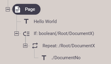 count(/Root/DocumentX)>0If you e.g. want to print out all detail lines of an input XML file in the designer, then you should use the repeat design element to iterate across all detail lines of the input file.