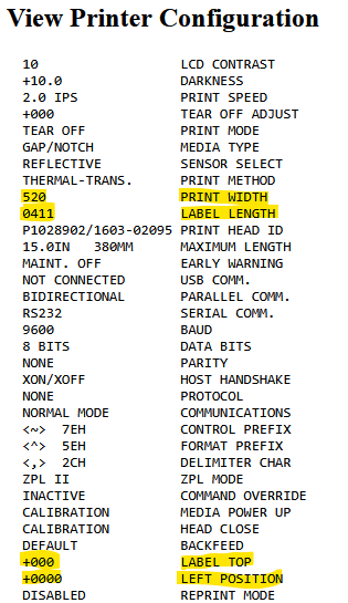 It is here assumed, that the Label top and Left position are both 0 as above. Any other value will shift the label output and may cause the label to be cut off. Also you need to make a note of the Print width and the Label length. - Now calculate the label size in cm. based on the values seen in the Print width and Label width in the printer settings. You do that in this way: