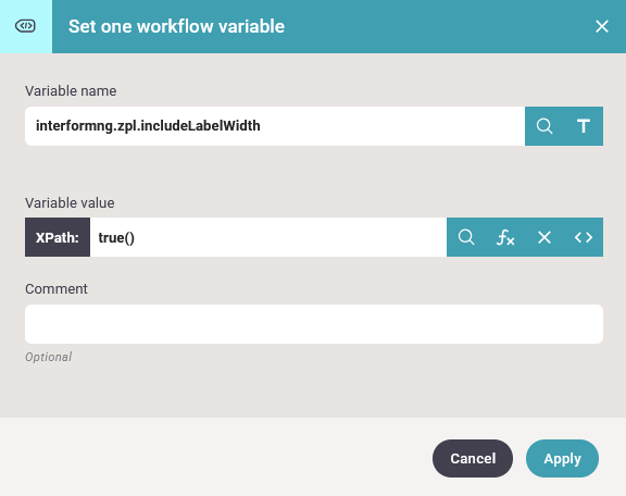 predefined variable, interformng.zpl.includeLabelWidth to true() (Xpath) in the workflow prior to the merge into ZPL e.g. like so: