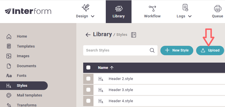 You can upload a new style to InterformNG2, if you click the blue upload icon on the upper left, while looking at the Styles library