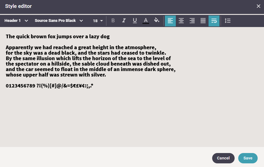 In order to change the settings of a text style you simply left click on the style inside the styles list in the Library. Then you see the style editor: