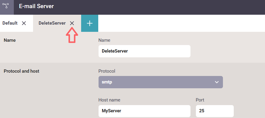On the right you can see the option to delete/remove the e-mail server configuration from InterFormNG2.