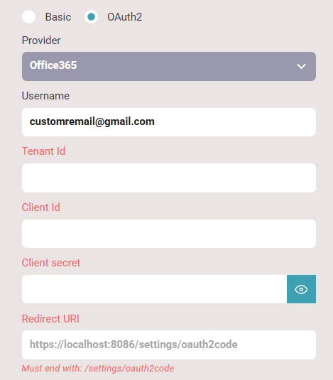 If you select OAuth2 for the authentication of your email server, then you will see these extra parameters on the email server setup:
