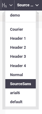 You define the font styles in the Library, but you can also define local, dynamic styles with the text style element. Local text style elements are shown first in the drop down list of the styles below.