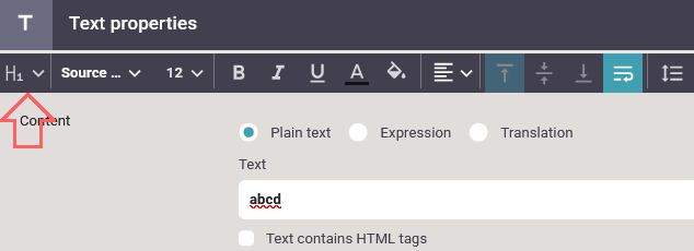 The header of the designer shows these icons, when you have selected one or more texts: