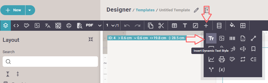 You can add a text style element in the middle of a template in the designer by clicking this icon: