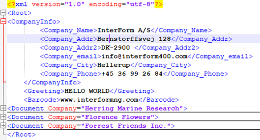 This can be used, if you want to split up an XML file per node in the input file. If you use the path above: /Root/Document on an XML file, that looks like this: