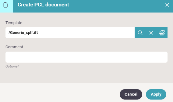 The second element generates the print data stream, that we want to send to the printer. In this case it is PCL, but it could also be ZPL, Direct protocol or PDF. For PCL output we want the payload to change into PCL and that is done with the workflow component, Create PCL document like below: