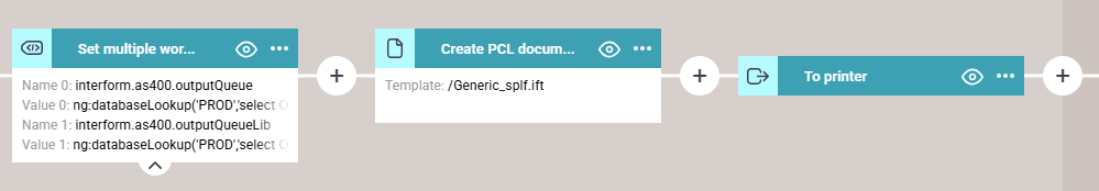 Now it is time to send the new PCL payload to the printer, that was previously selected. That is done with the workflow component, To printer, which has no parameters: