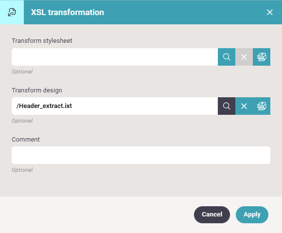 This advanced converter workflow component can transform the XML payload with an XSL transformation.